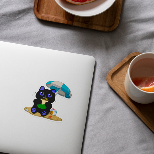 Tomo - Travel Series - Beach Time - Black Cat Sticker