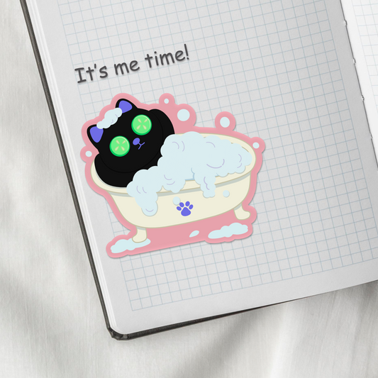 Tomo - Relaxing Cat in Bubble Bath Sticker - Black Cat Sticker