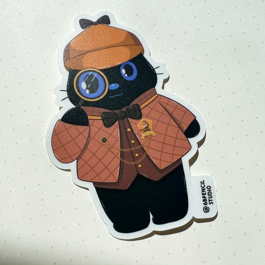 Detective Tomo - Holding Magnifier - Black Cat Sticker